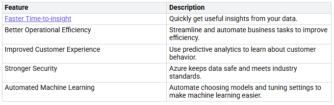 Azure boosts your analytics skills by giving you advanced tools for data processing and machine learning. It helps you get useful insights fast, which supports quicker strategic decisions. Here are some features of Azure that help with advanced analytics: