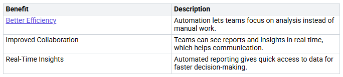 Automating reporting workflows in Office 365 analytics changes how you access and use data. Automation cuts down the time spent on manual reporting tasks, letting your teams focus on analysis. Here are some benefits of automating reporting workflows: